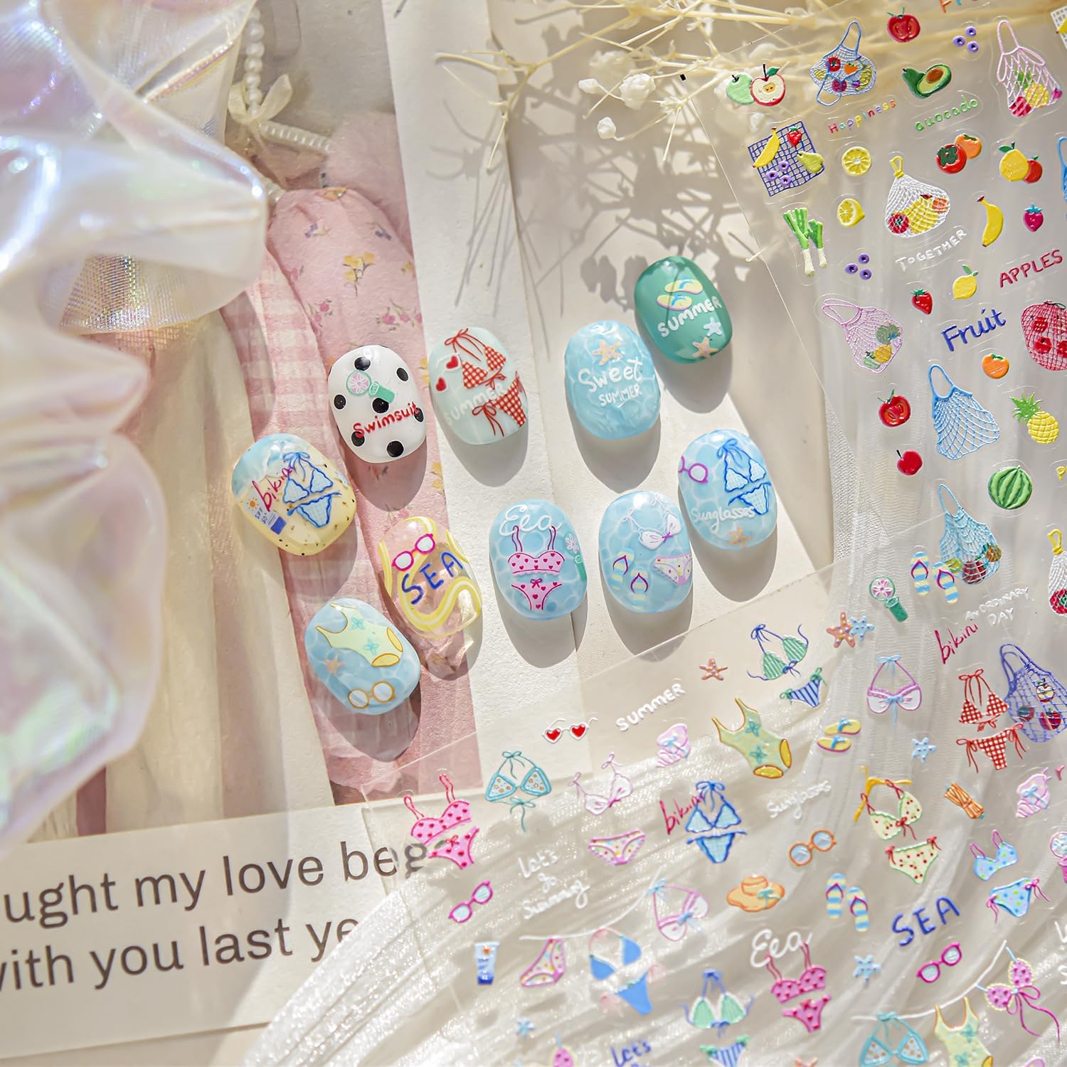 - Fruit Nail Stickers: You will receive 1 sheet summer beach nail decals for nail art,Large number of different patterns for you to use and replace in daily life, nail decals are full of sensuality and elegance, various charming patterns bring you a different mood