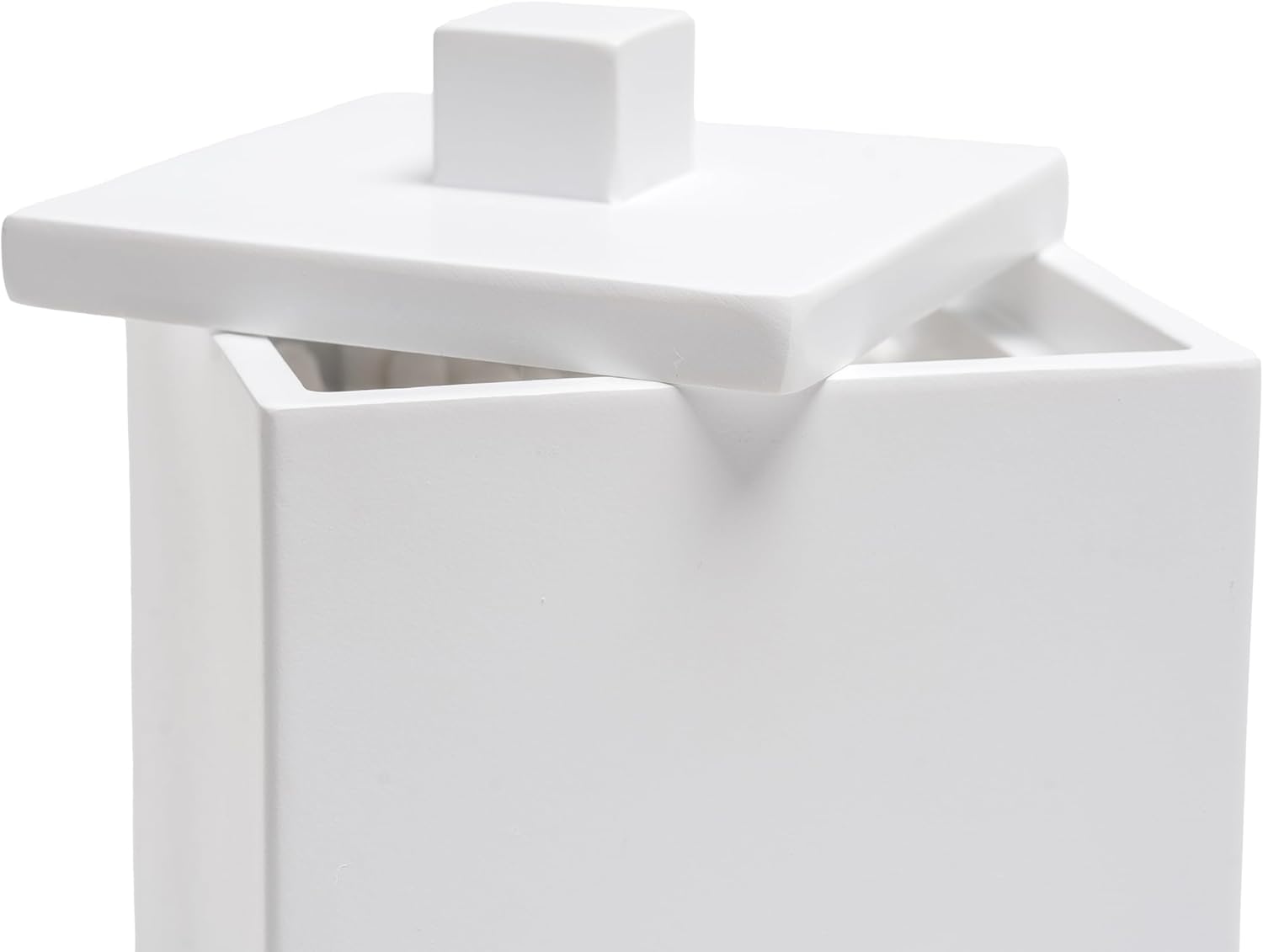 Bathroom Qtip Holder, Resin Cotton Swab Holder with Lid Qtip Holder Dispenser for Cotton Ball Bath Salts Storage Christmas Birthday Anniversary, Matte White