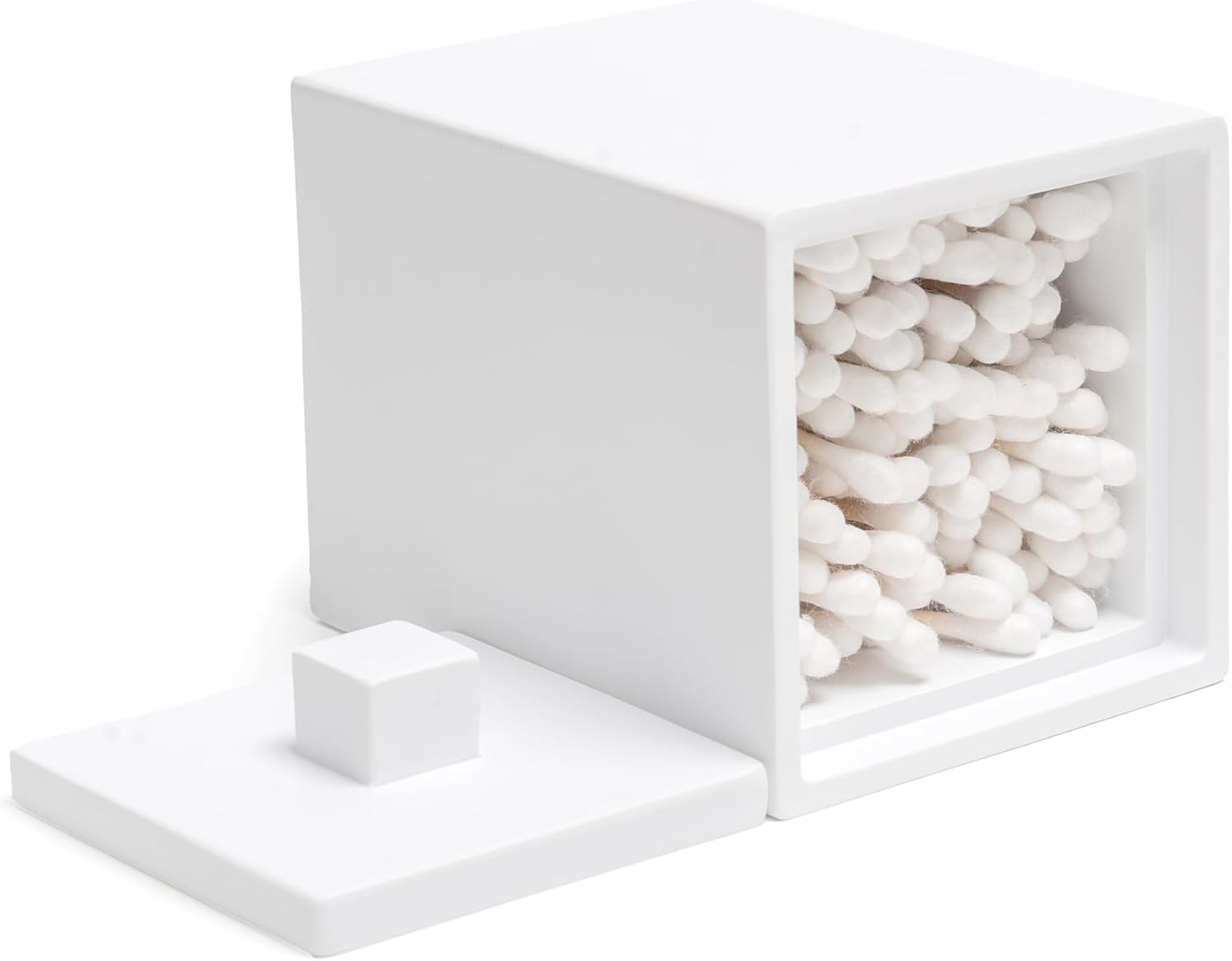 - High-quality Resin materials - Our cotton swab organizer made of 100% resin, The exterior looks like Ceramics and Marble, but it is more drop-resistant than Ceramics and glass. More economical and environmentally friendly than marble