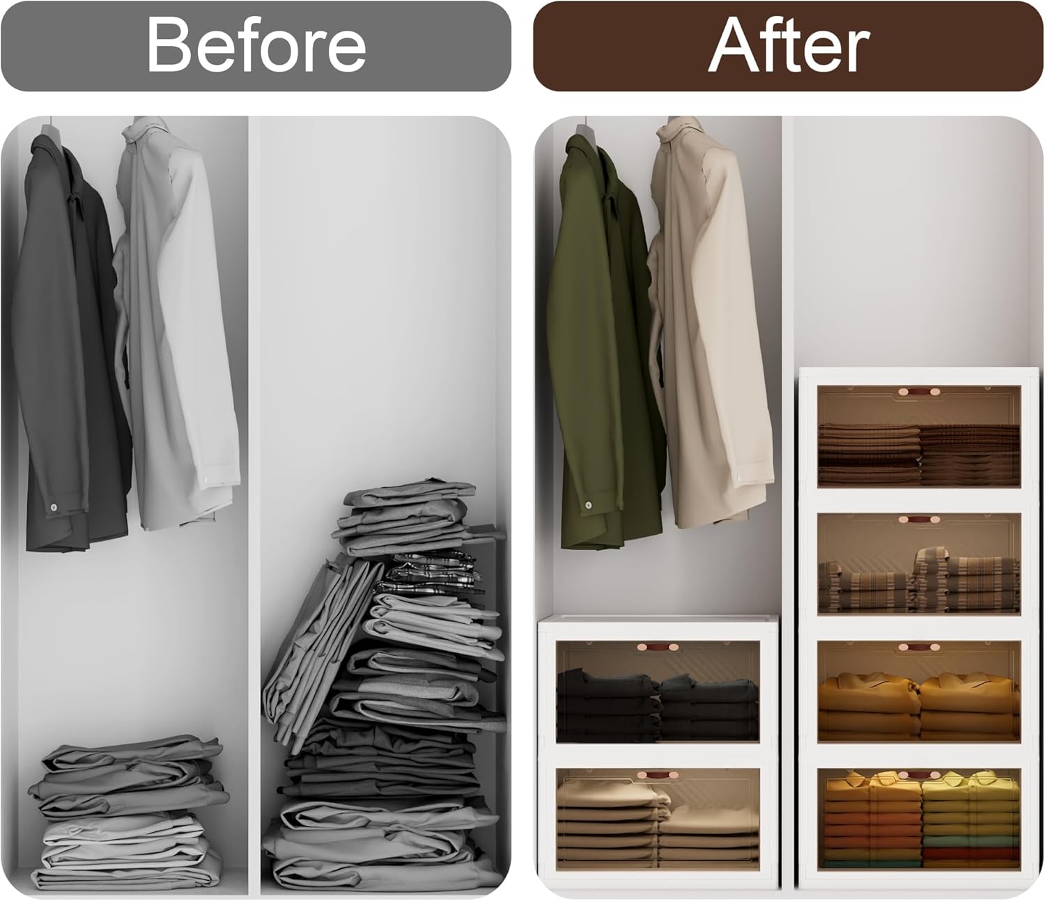 - [Foldable & Translucent] The foldable design provides more convenience. When you're not using these storage bins, you can fold them up and store them, saving more space. The translucent design of the storage box makes it easy to identify the contents of the storage box without opening it