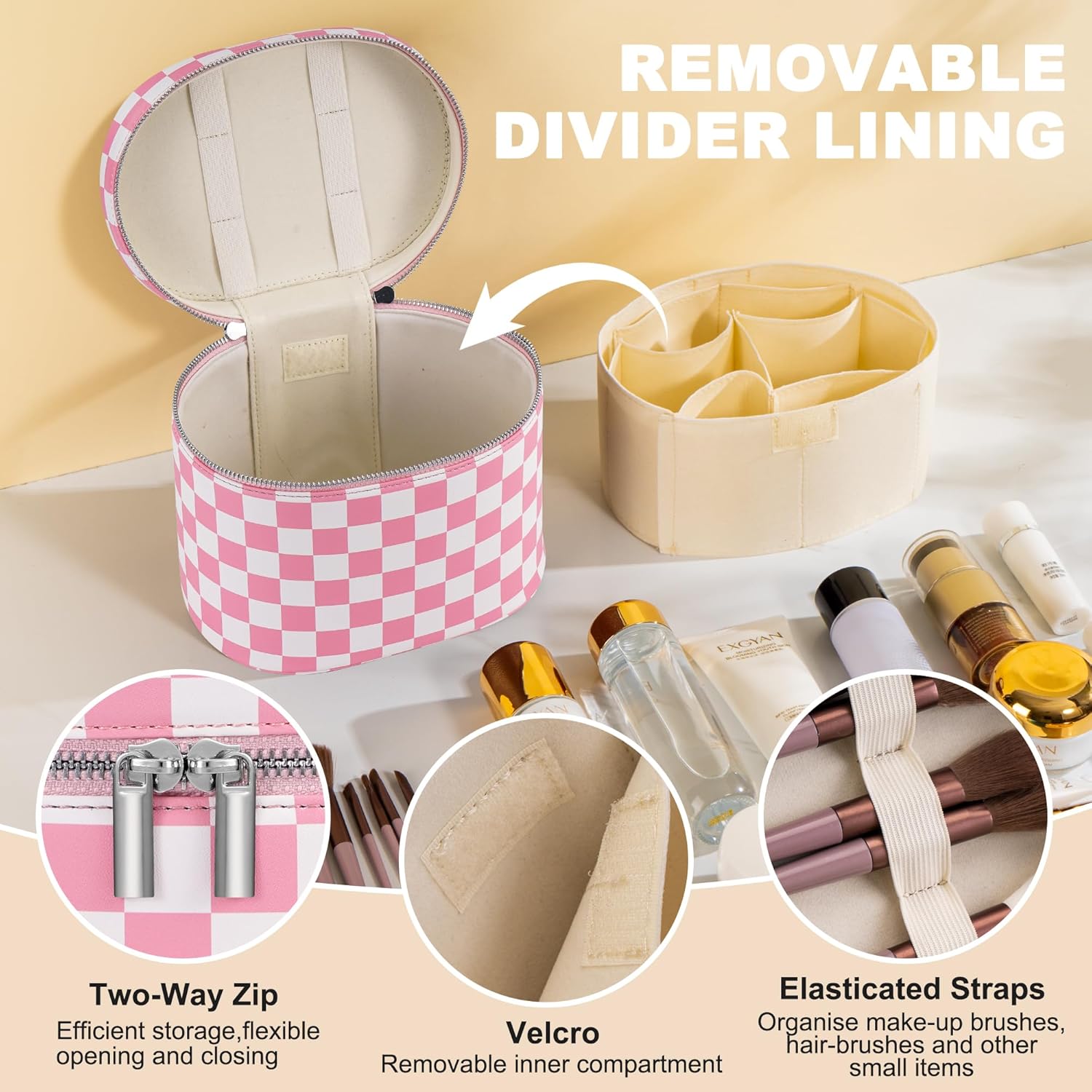 - Large Capacity: This makeup bag measures 8×6×6.5 inches, offering ample space for cosmetics, toiletries, and skincare. Its portable size makes it ideal for travel, while still holding full-size bottles, brushes, and daily essentials with ease.