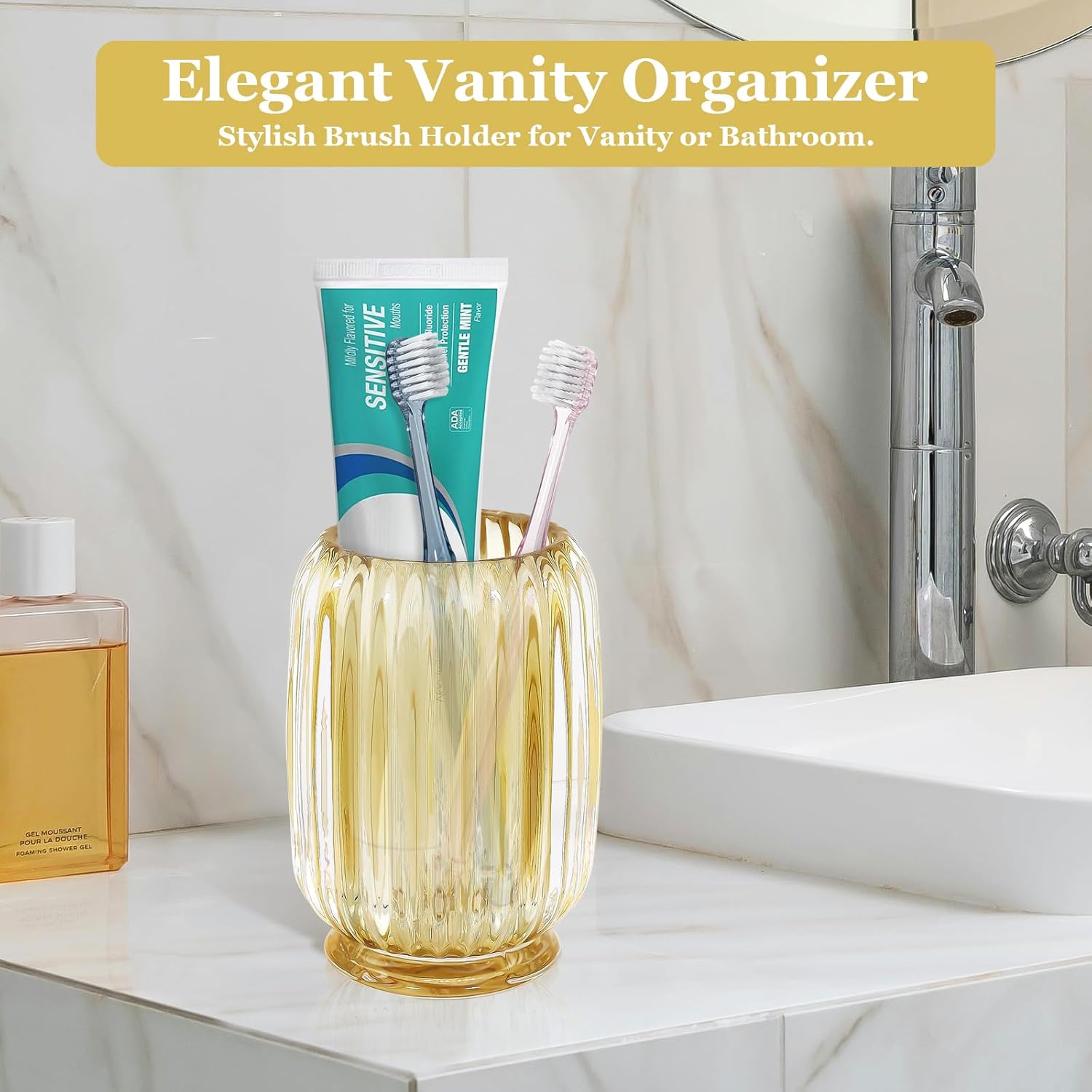 - Elegant Vanity Organizer β A stylish makeup brush organizer cup that adds a touch of sophistication to your vanity, bathroom counter, or desk.