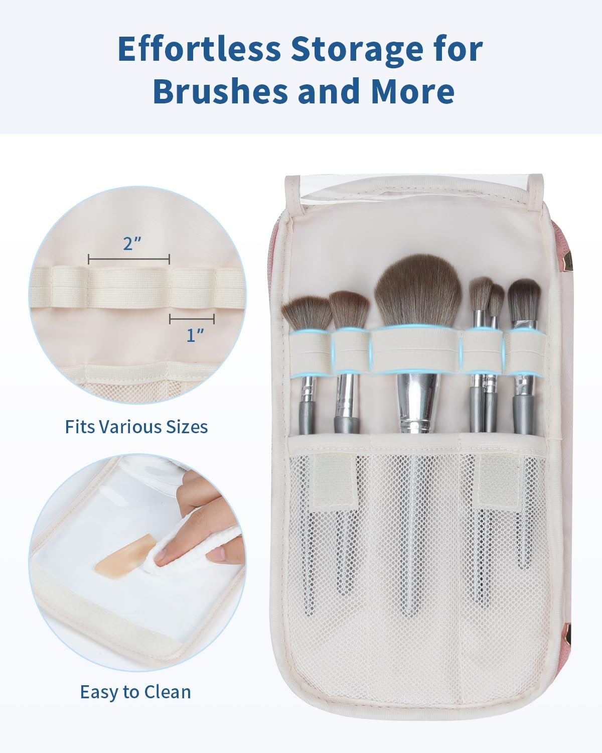 - 【Effortless Organization】This make up bag features two side zip pockets and a large front zip pocket with two mesh sleeves, perfect for organizing all your travel essentials. Store personal care items, beauty tools, or hair accessories in designated pockets, keeping everything neat and easily accessible.