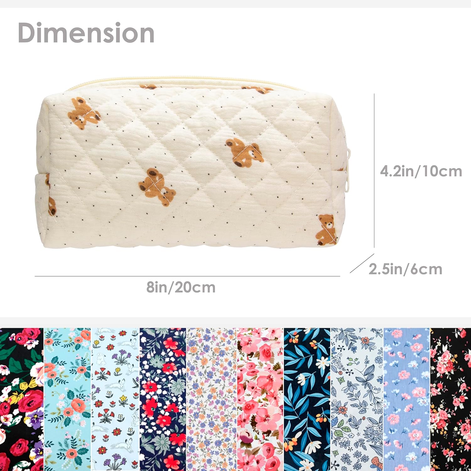 PAZIMIIK 6PCS Vintage Quilted Makeup Bag SET Cosmetic Pouch for Brushes Pencils and Travel Make Up Accessories for Women and Girls Bear Beige