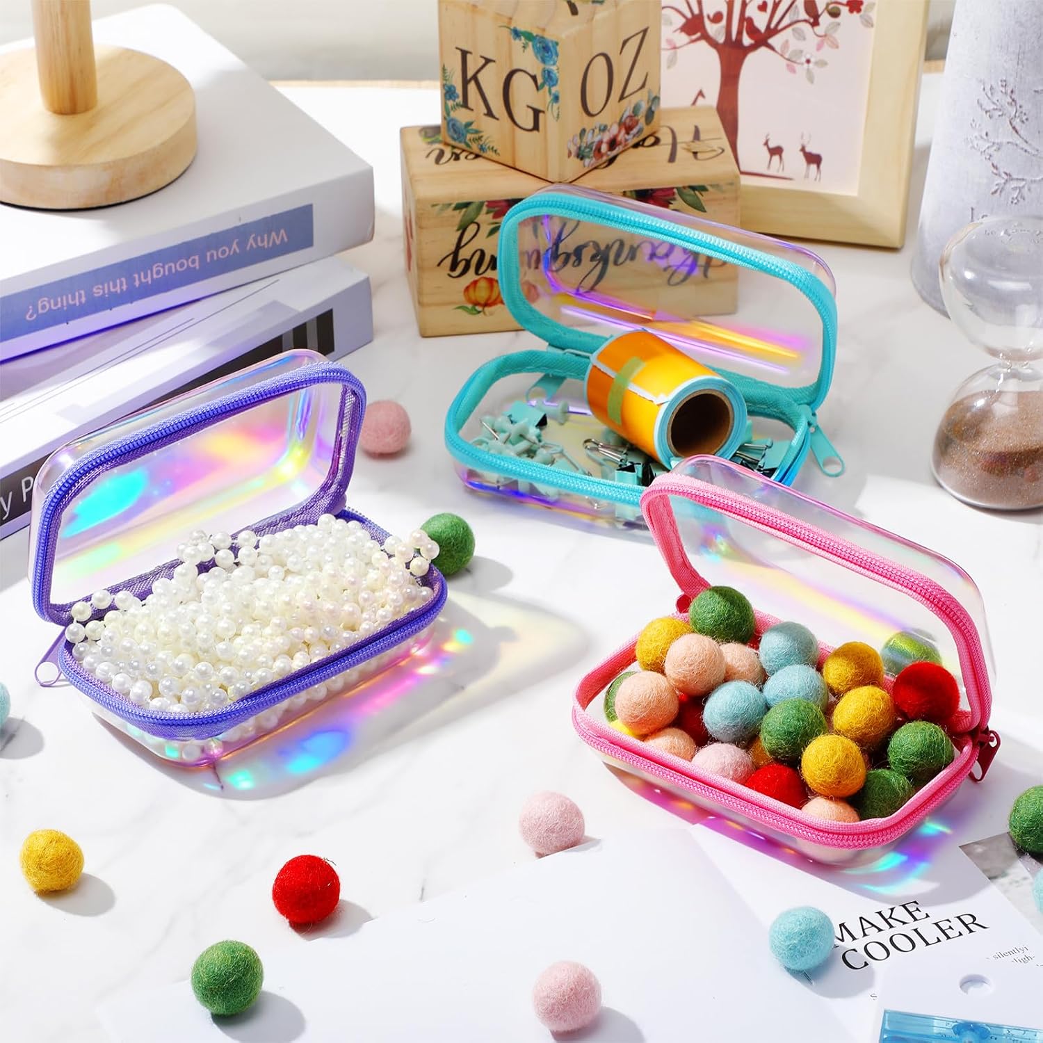 Hoolerry 3 Pcs Clear Hard Zipper Case Plastic Pouch Transparent Hard Case Clear Makeup Bag Portable Travel Organizer Bin for Cosmetics, Building Blocks, Puzzles(Laser,Xs)