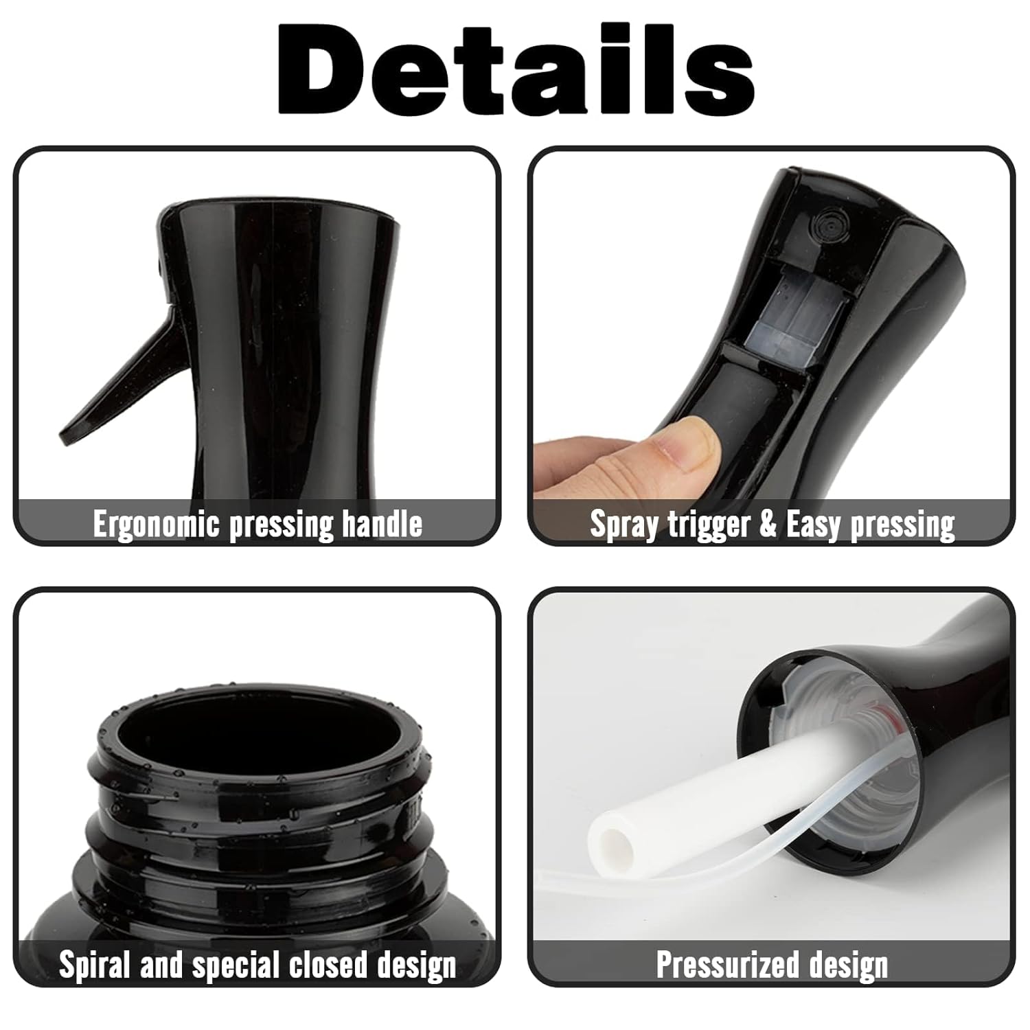 Spray Bottle for Hair (10.15OZ /300ML) Continuous Ultra Fine Mist Sprayer for Hair, Salons, Barber, Plants, Skin Care, Cleaning Black