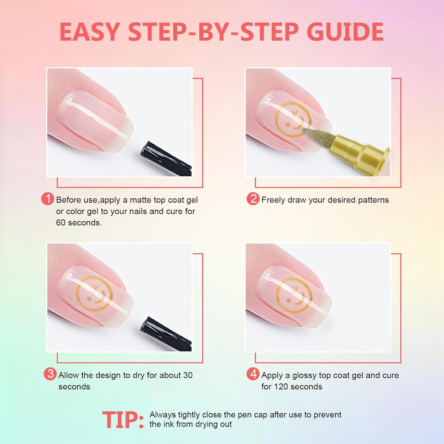 - 【Easy to Use, Beginner-Friendly】No professional skills required, suitable for enthusiasts, pros, and beginners. Simply shake well and press the tip vertically to release ink; the smooth flow ensures easy creation of unique nail designs. Everyone can enjoy DIY fun and get great results quickly