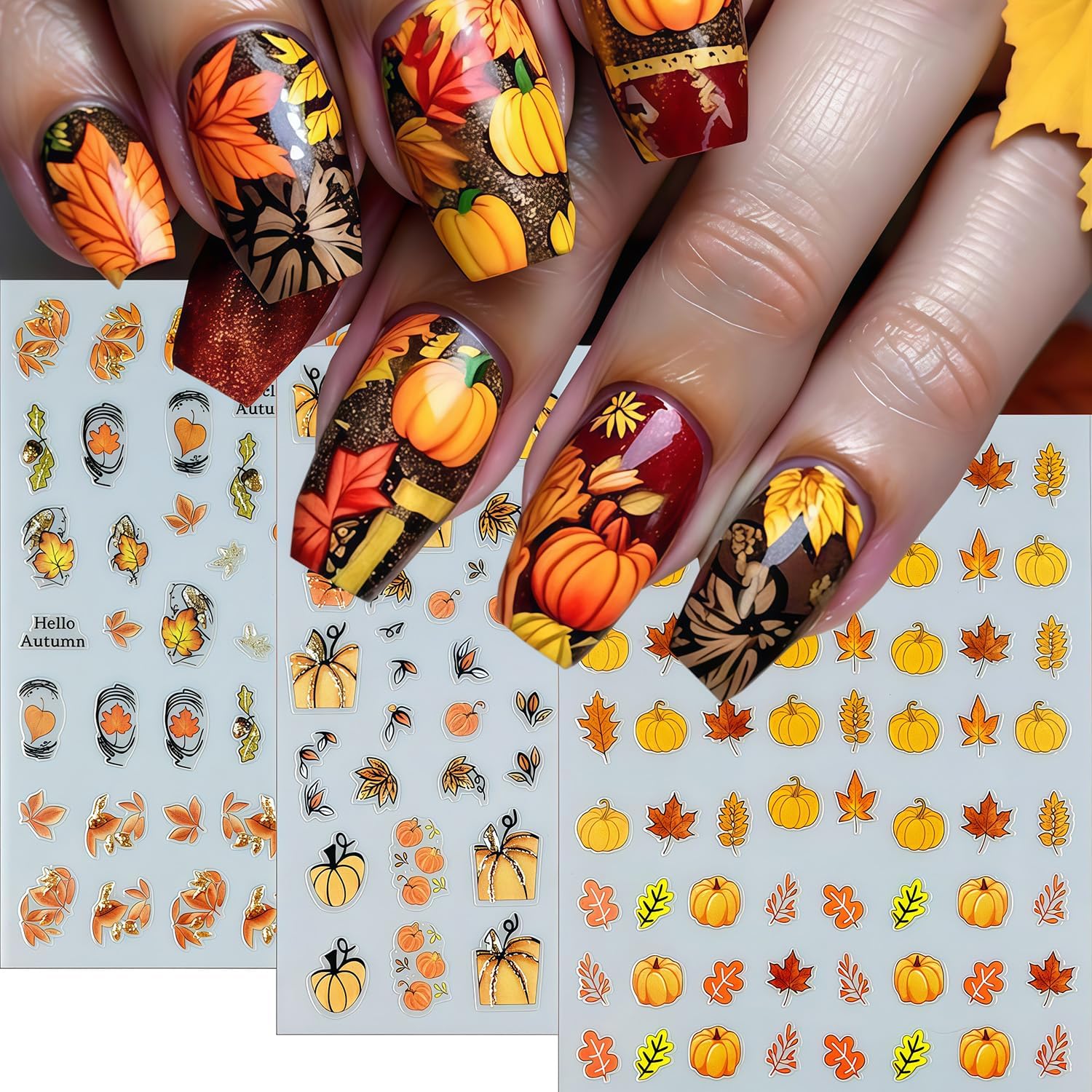- Quantity: You will get 6 sheets of fall maple leaves nail art stickers, including cute maple leaves and pumpkin,leaf designs, not easy to fall off or fade, can easily create a variety of themed nail art, meet various nail art needs