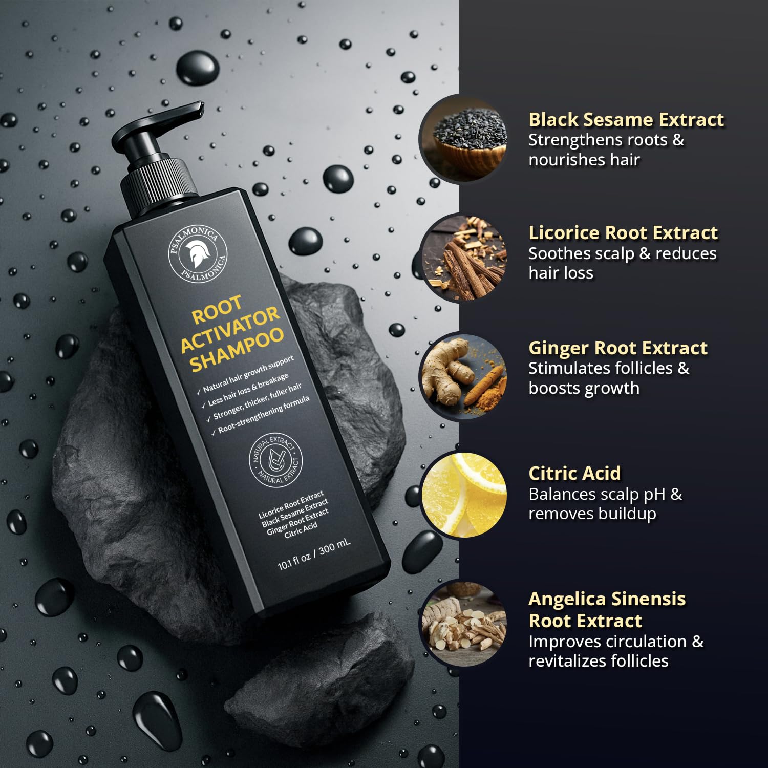 - πΏ Herbal Formula for Hair Regrowth: Enriched with over 12 herbal ingredients, including Ginger Root, Black Sesame, Polygonum Multiflorum, Angelica Sinensis, Licorice Root extract and Rosemary Oil, this shampoo supports healthy hair growth from the scalp up.