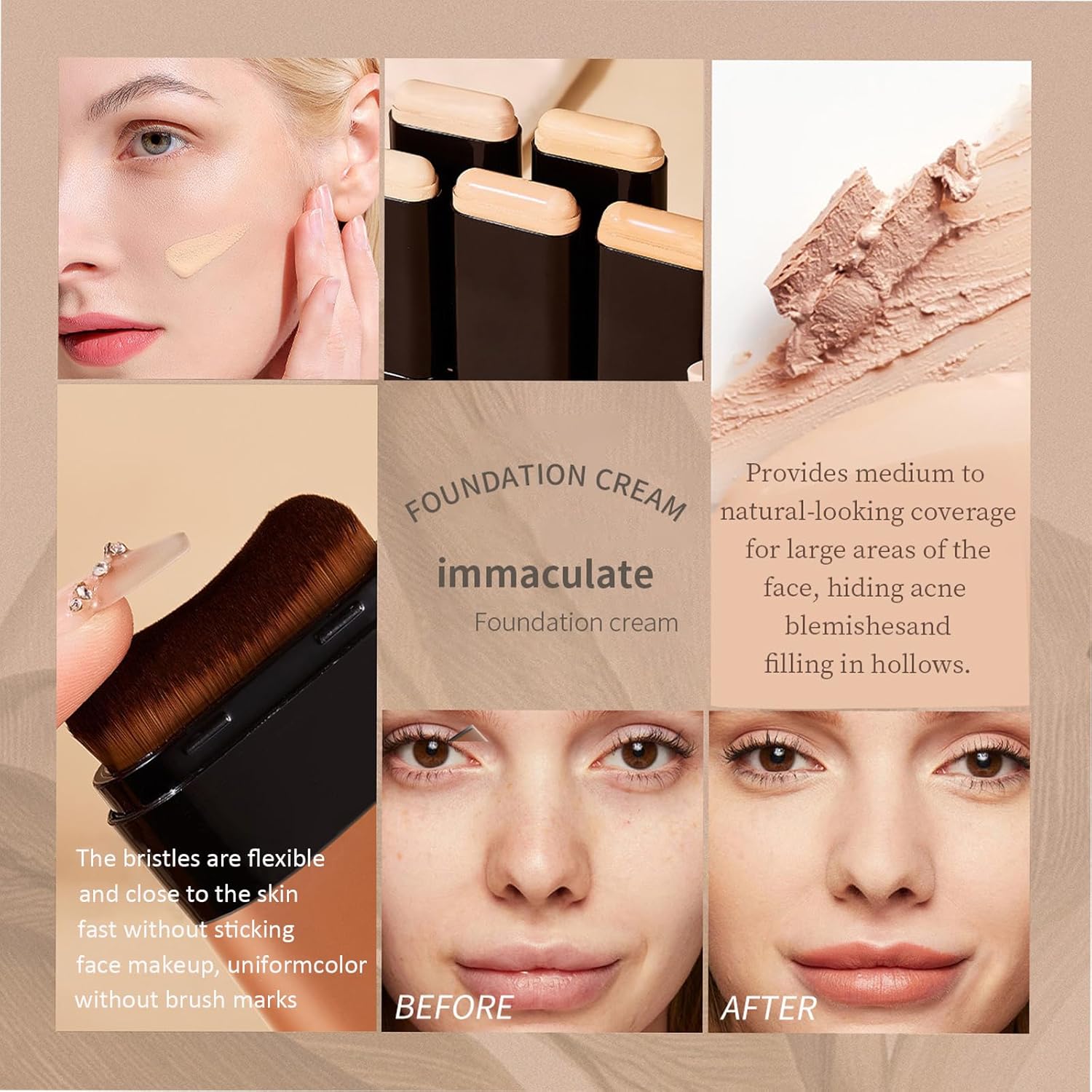- Lightweight Moisturizing Texture - This foundation stick is lightweight, breathable, non-clumping, blends seamlessly upon application, provides long-lasting moisture, and is non-greasy. After application, it perfectly blends with the skin, locking in moisture while offering adjustable coverage.