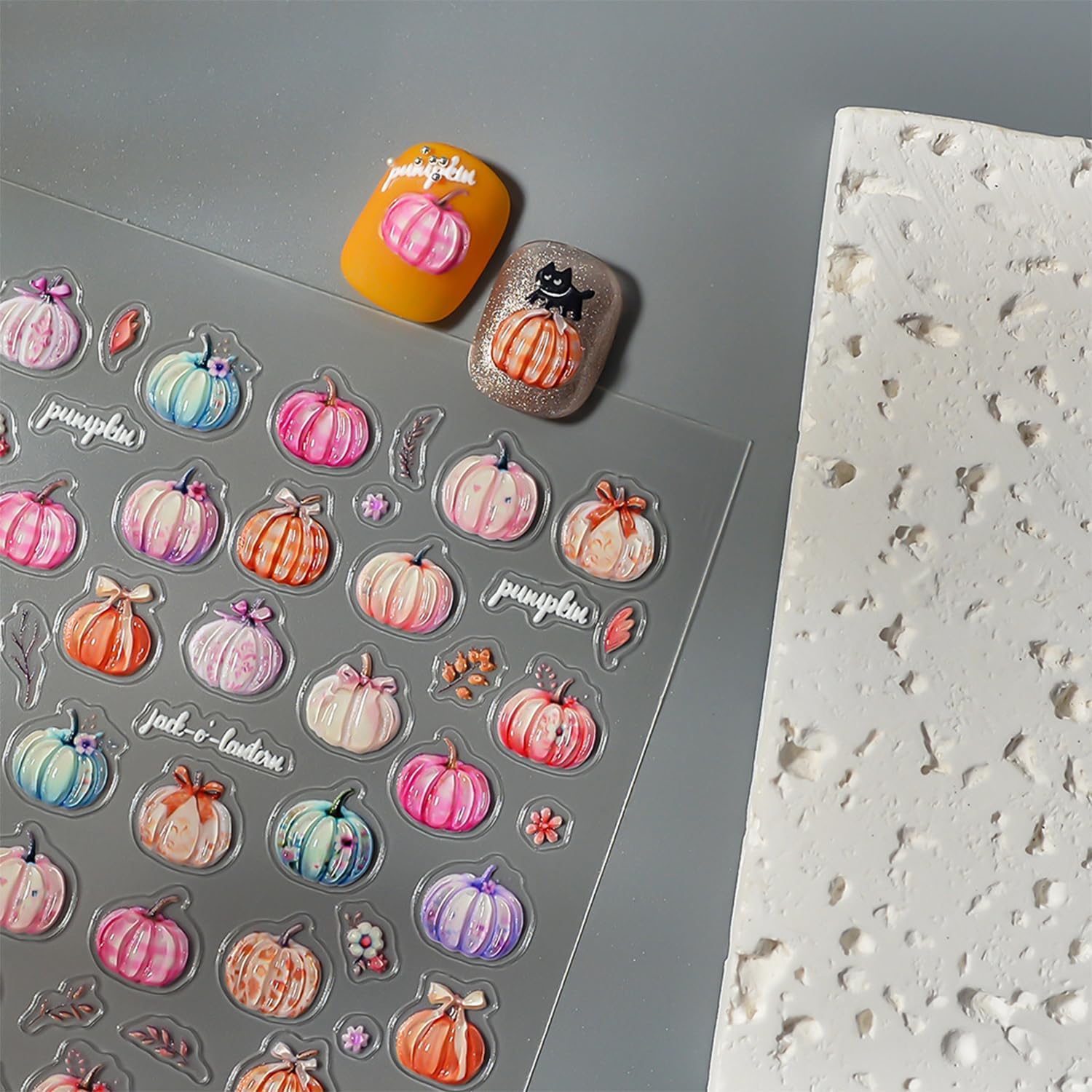 1 Sheets Colorful Pumpkin Nail Stickers for Nail Art 5D Self-Adhesive Embossed Fall Nail Art Stickers Thanksgiving Nail Decals Autumn Leaves Nail Design Sticker for Women Manicure DIY