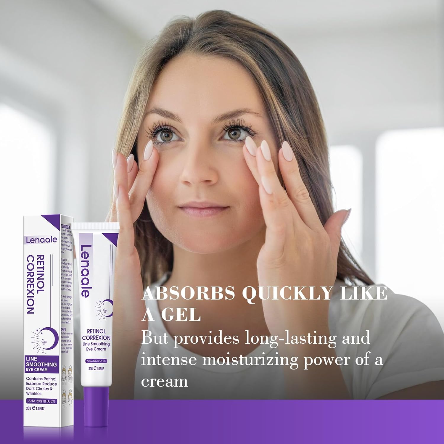 • ANTI-AGING FORMULA: Our Lenaale Retinol Eye Cream is specially designed to target the delicate skin around the eyes. Packed with retinol, a potent form of vitamin A, this eye cream helps reduce the appearance of fine lines and wrinkles, promoting smoother, firmer skin. Over time, it rejuvenates the area for a more youthful and radiant look