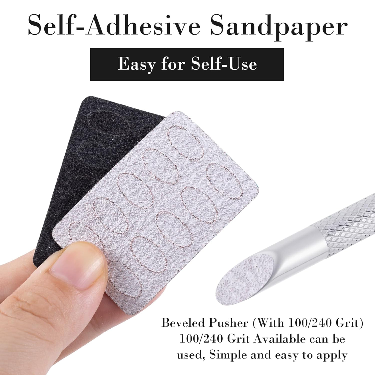 - Package List: You will get 1 pcs cuticle pusher tool with 2 pcs black 240# grit nail files, 2 pcs grey 100# grit nail files, suitable for nail care. It is an ideal tool for cleaning nails